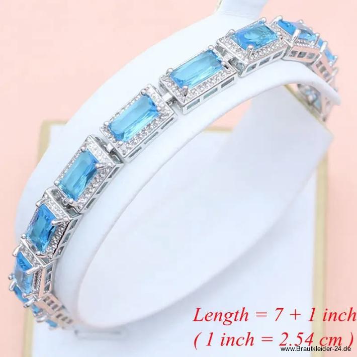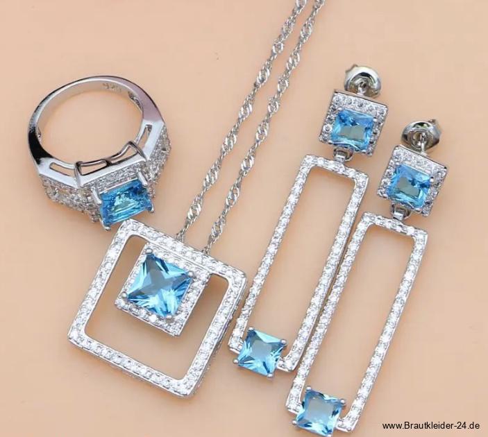 Brautschmuck Set Linette 925 Sterling Silber Halskette Armband Ohrringe Ring Himmelblau