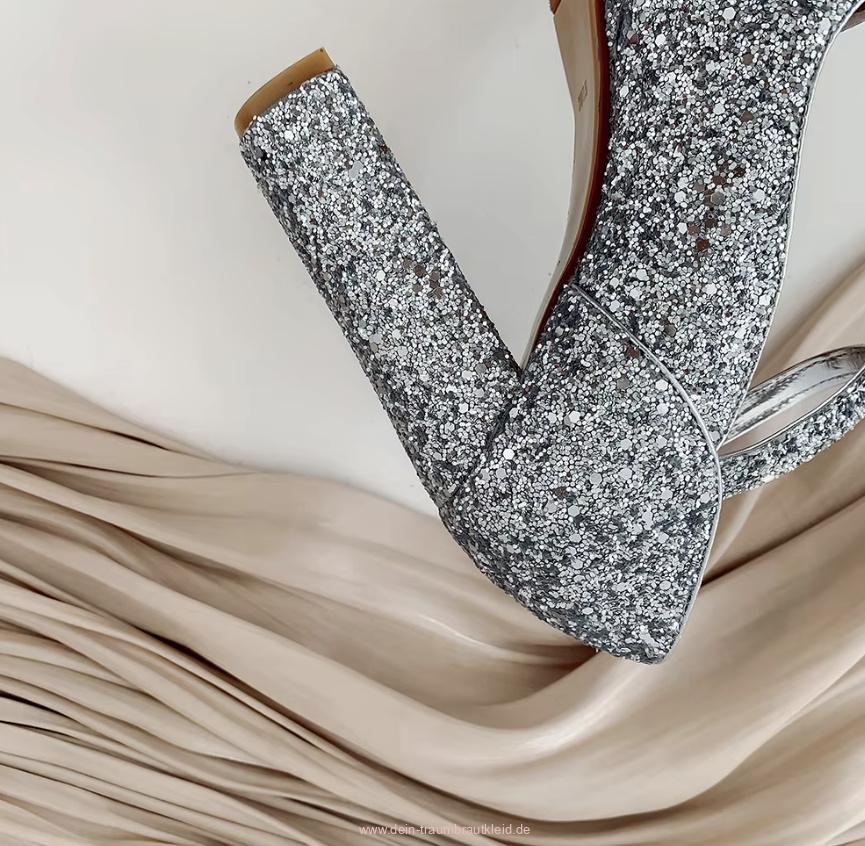 Plateau Brautschuhe Hochzeitsschuhe mit Glitzer Pailletten in Silber