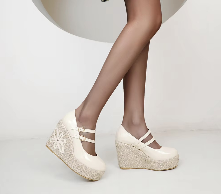 Patent Leather Boho Wedge Heel Bridal Shoes with Flower