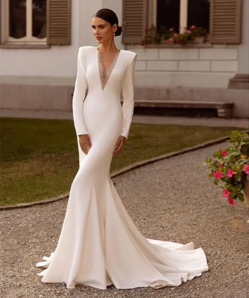 Mermaid Wedding Dress Elegant with V-neck