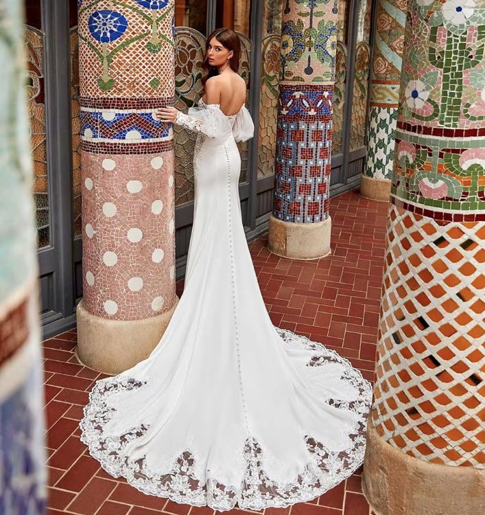 Off-the-shoulder fit and flare wedding dress Beautiful with train