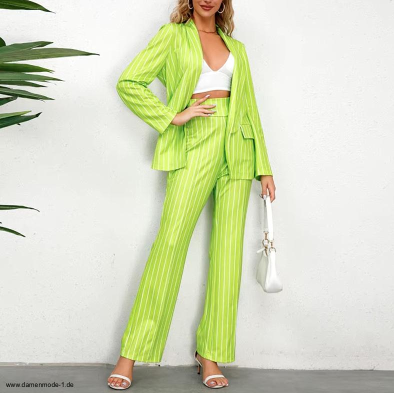 Damen Hosenanzug Gerade Geschnitten in Hellgrün Gestreift