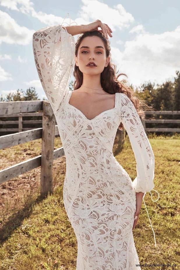 Meerjungfrau Brautkleid Leonarda aus Spitze mit Rückenausschnitt und Schleppe