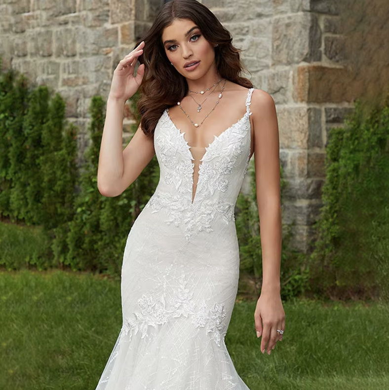 Sexy spaghetti strap mermaid wedding dress Christa with lace tulle train and back neckline
