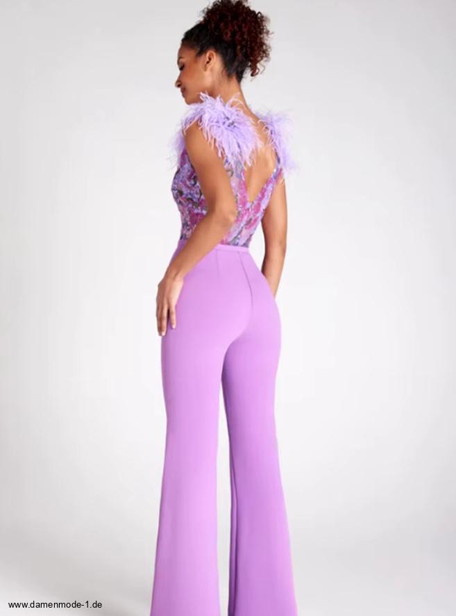 Eleganter Einteiler Jumpsuit Schmal Geschnitten in Lavendel Ärmellos