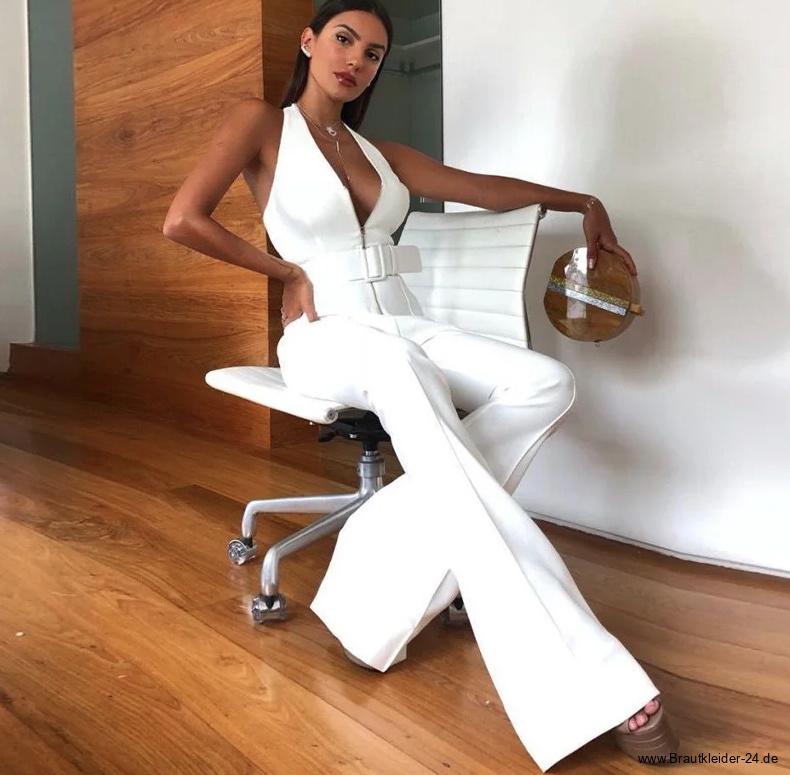 Eleganter Neckholder Braut Einteiler Leonora für den Standesamt Lang mit Gürtel
