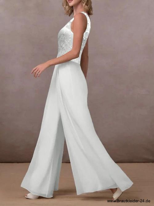 A Linie Satin Braut Einteiler Leandra für den Standesamt Lang mit Spitze