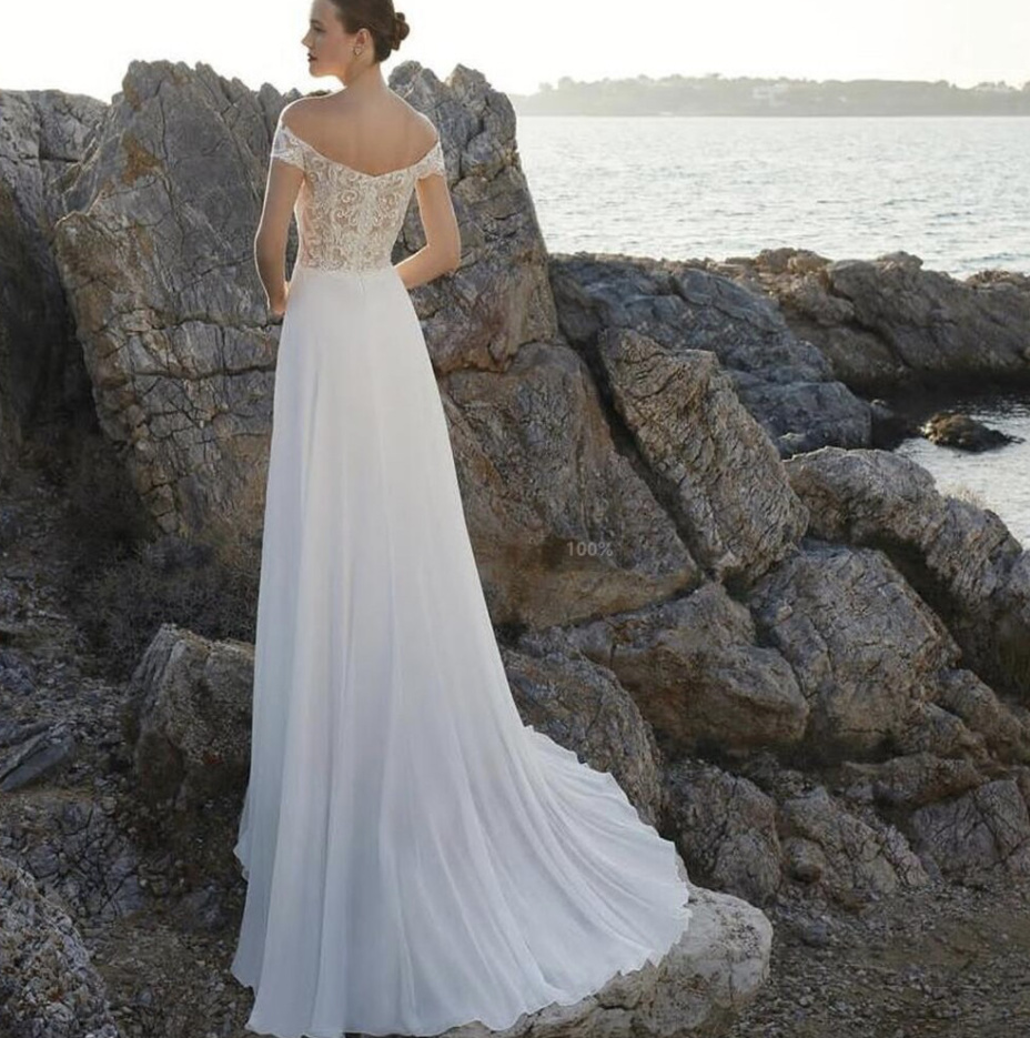 Off-the-shoulder I-line wedding dress Daphne with cut out and lace