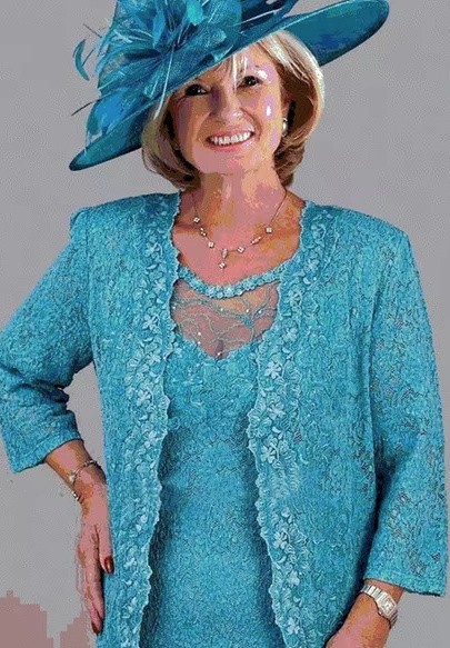 Mother of the Bride Outfit Ilinie Dress With Long Lace Jacket in Light Blue