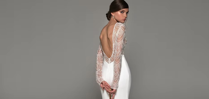 Backless mermaid wedding dress Darlin with pearl appliqués and brush train
