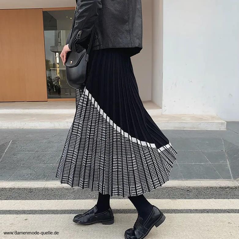 Vintage Style Plissee Rock Lang in Schwarz Silber