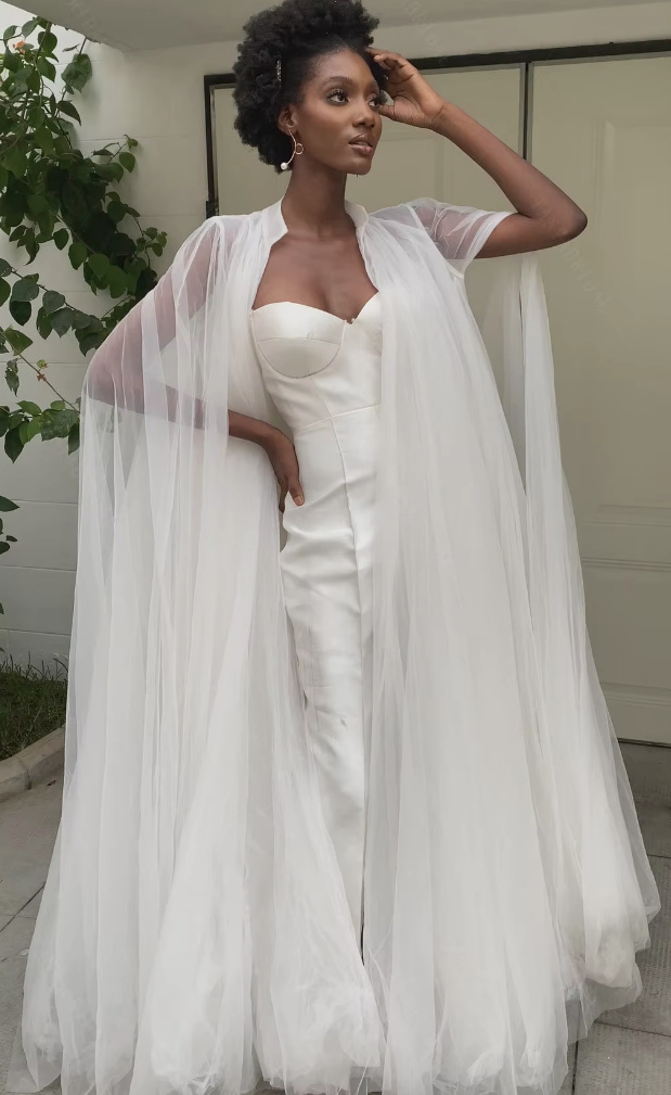 Long Tulle Bridal Jacket Romantic Floor Length in White