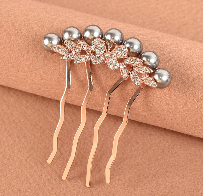 Bridal Hair Accessory Hair Comb with Pearls and Butterflies