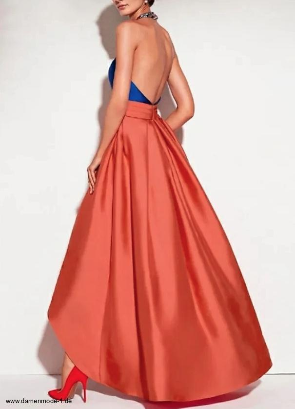 Neckholder Träger Satin Abendkleid Vorne Kurz Hinten Lang in Blau Orange