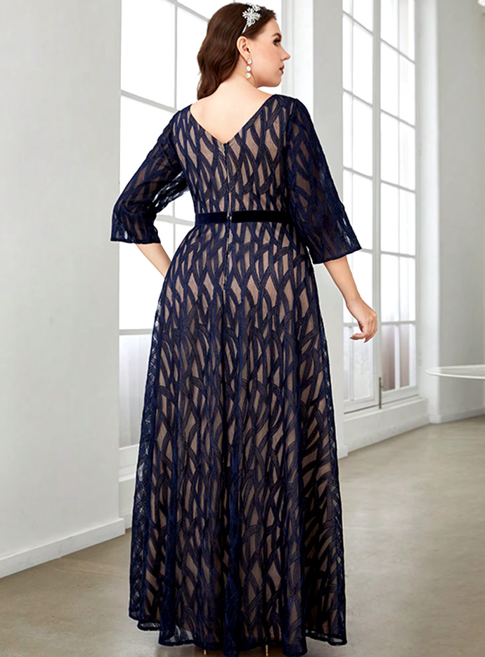 A Line Maxi Dress Elegant for Wedding Guests in Dark Blue with V Neck