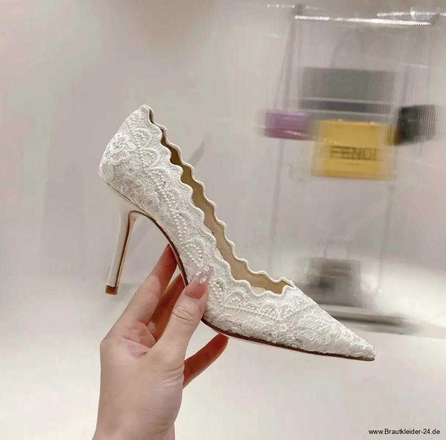 Brautschuhe Hochzeitsschuhe Louica High Heels mit Spitze in Weiß Absatz 6 – 10cm