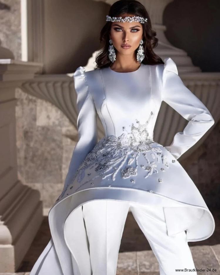 Langarm Braut Overall Einteiler mit Stickereien und Oversize Schärpe