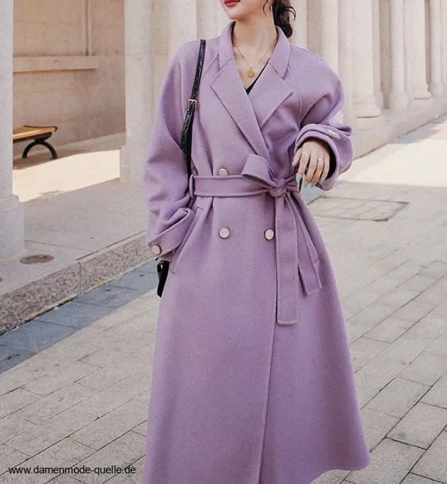 A Linie Damen Wollmantel Elegant in Flieder mit Gürtel