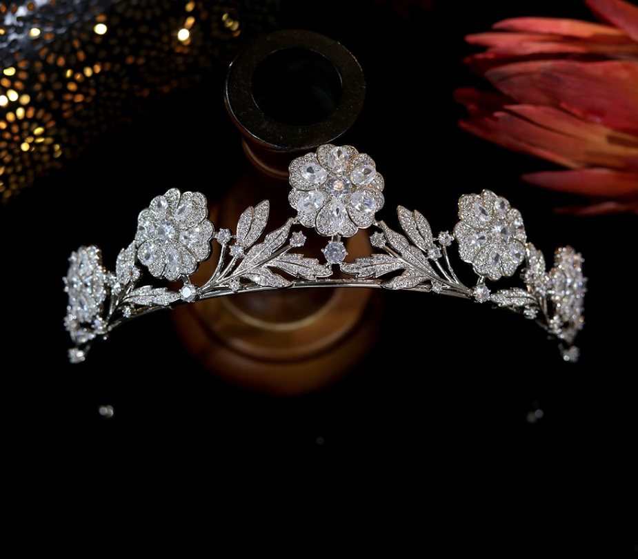 Crystal Bridal Tiara Diadem Ella Romantic with Flowers in Silver