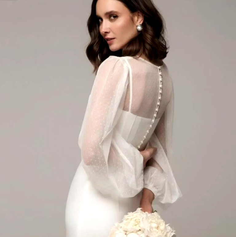 Long Sleeve Tulle Bridal Jacket Short