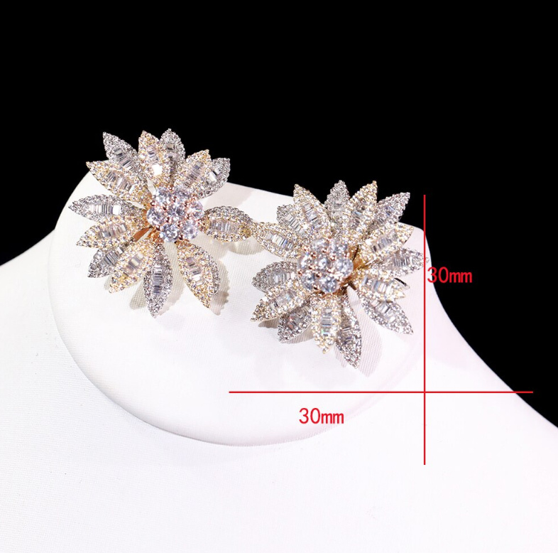 New Bridal Fashion Flower Crystal Bridal Earrings Gold