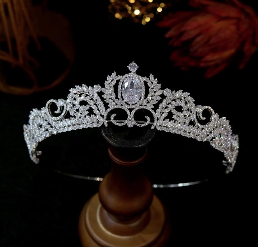 Princess Headpiece Zircon Bridal Diadem Tiara in Silver