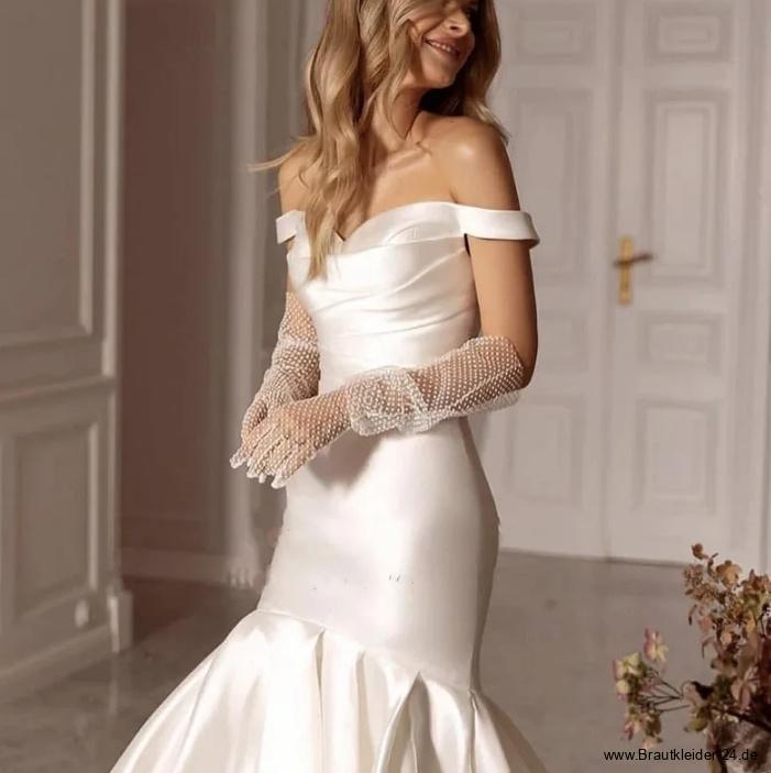 Schulterfreies Organza Meerjungfrau Brautkleid Lari Schleppe