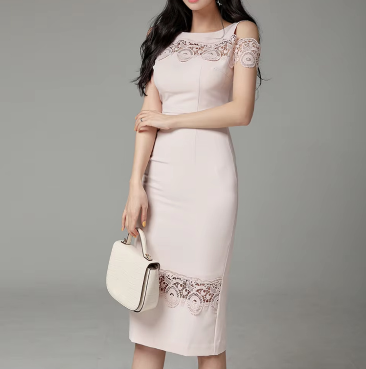 Spaghetti Straps Sheath Pencil Civil Ceremony Dress Christel in Soft Pink