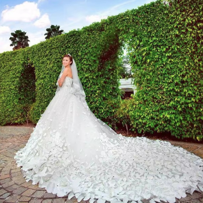 Princess Luxury Ball Line Wedding Dress Dominika with Flowers and Chapel Train