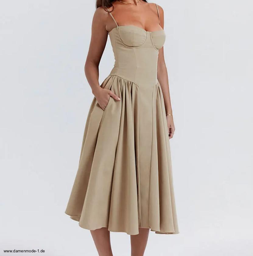 Spaghettiträger Vintage Sommerkleid Wadenlang in Beige