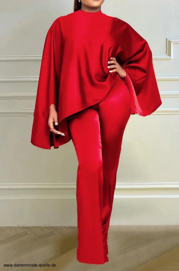 Satin Zweiteiler Damen Outfit Set Elegant und Festlich in Rot