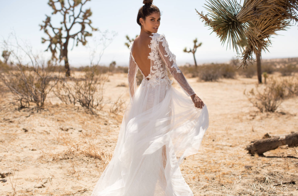 A-line Boho Style Civil Wedding Dress Emilia for the Bride Long Sleeve with Floral Lace