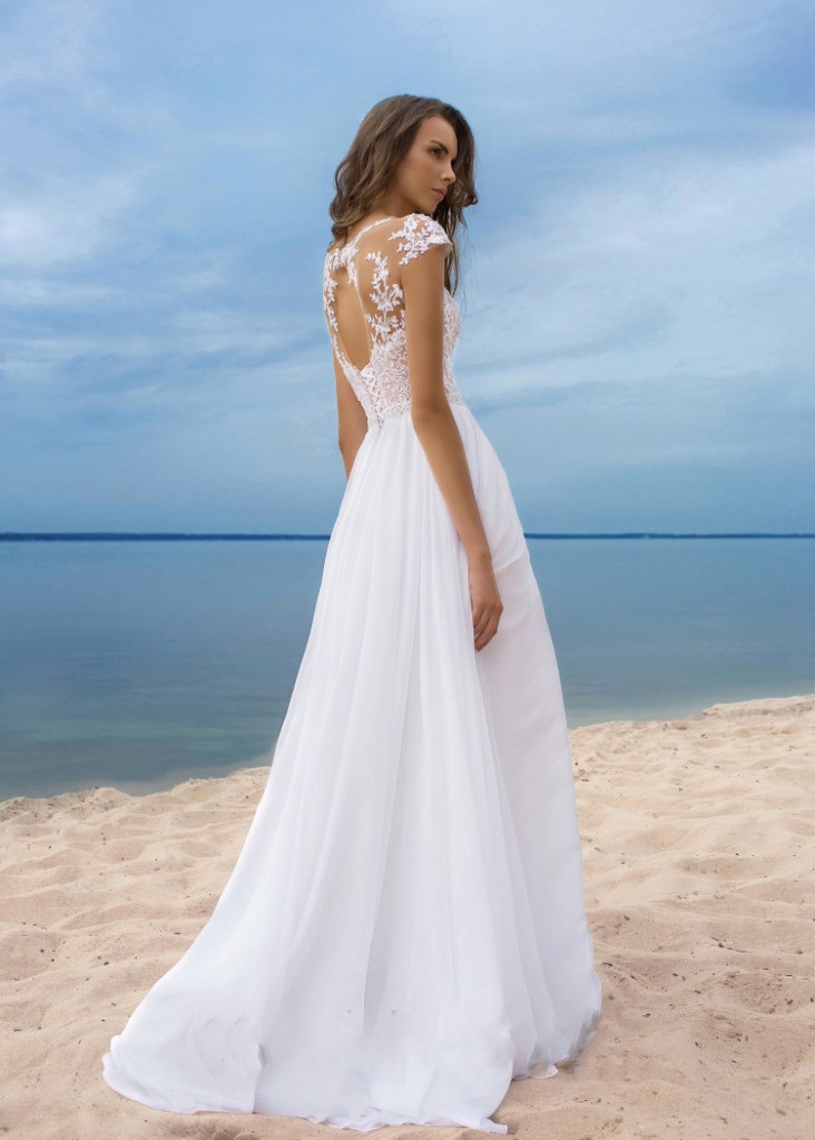 Boho Style Civil Wedding Dress Ellen with Lace Appliques