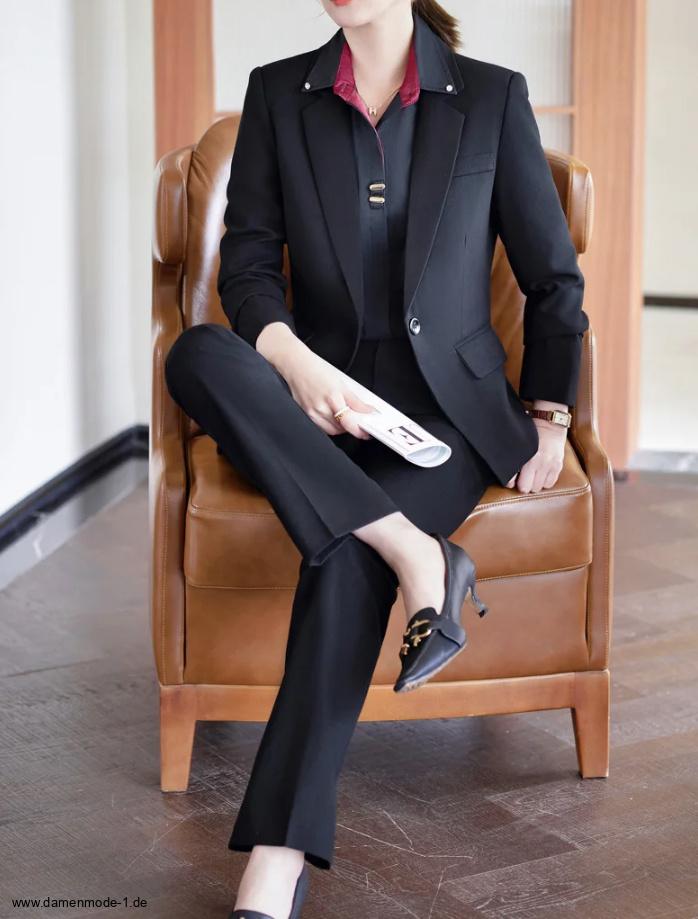 Business Damen Hosenanzug Babette Elegant in Schwarz Lang