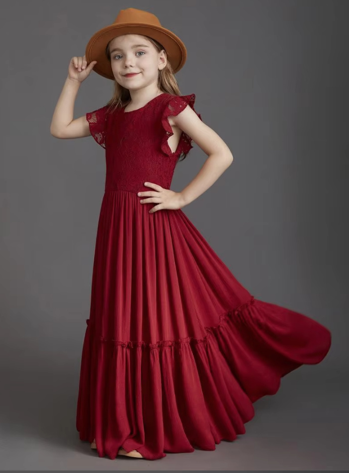 A Line Spaghetti Straps Boho Style Flower Girl Dress Christin in Dark Red