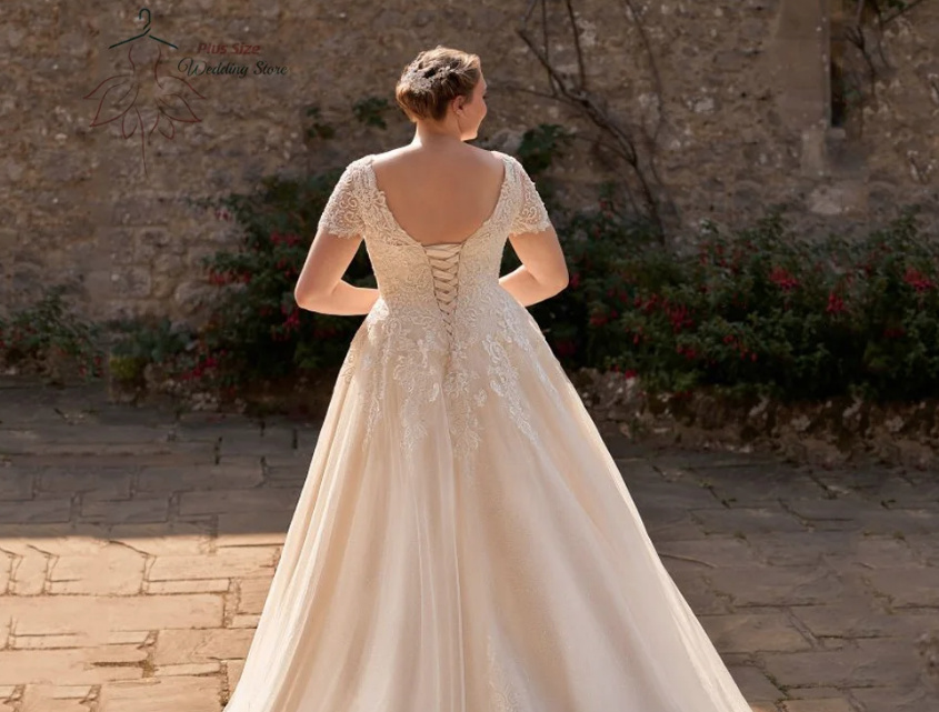 Plus Size Short Sleeve Wedding Dress Ayana with Lace and Train