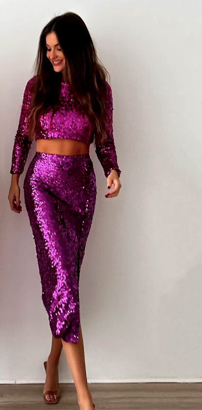 Sexy Glitter Women’s Two-Piece Outfit in Purple