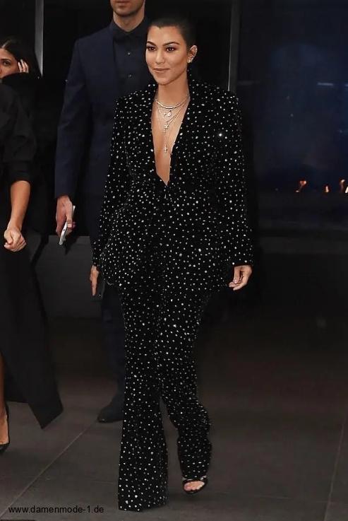 Street Power Outfit Women’s Pantsuit in Black with Glitter Pearls Sequins