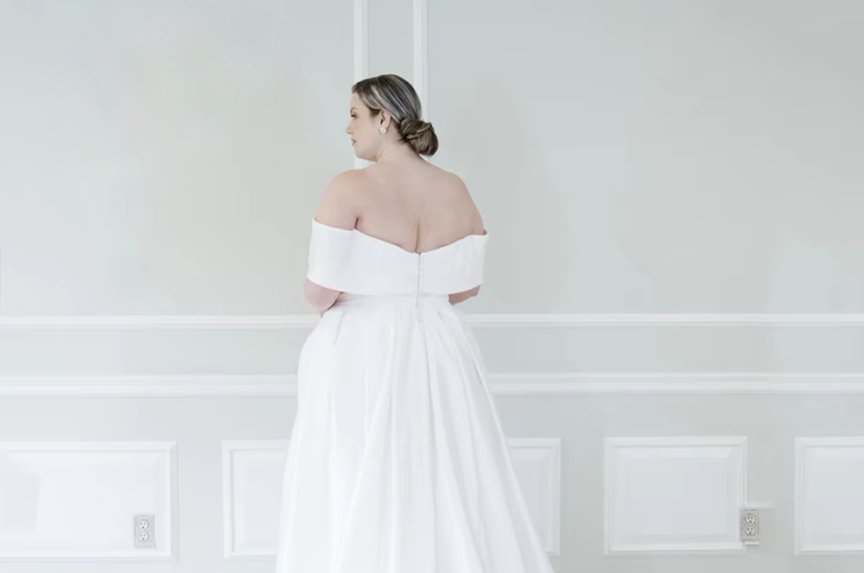 Off-the-shoulder curvy wedding dress simple floor-length