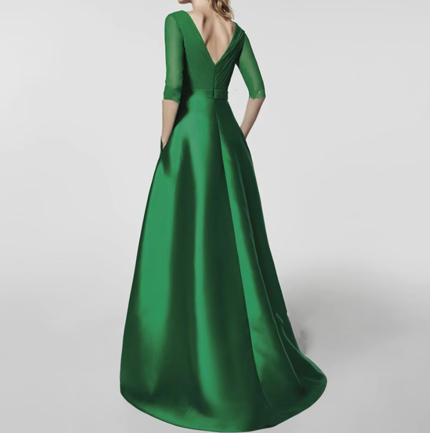 Langarm Chiffon Abenkleid Dagmar mit Ärmel in Grün
