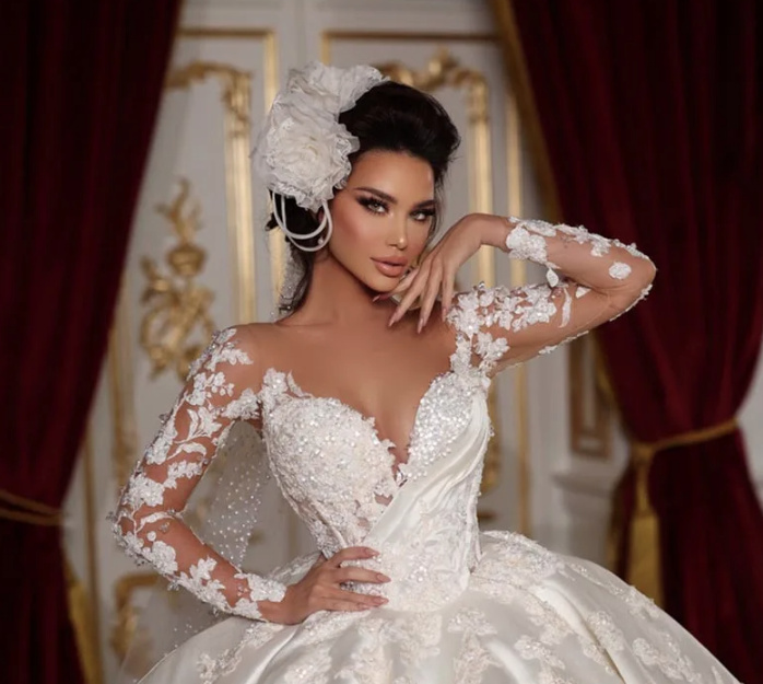 Luxury Princess Wedding Dress Antonina with Appliques and Tattoo Lace