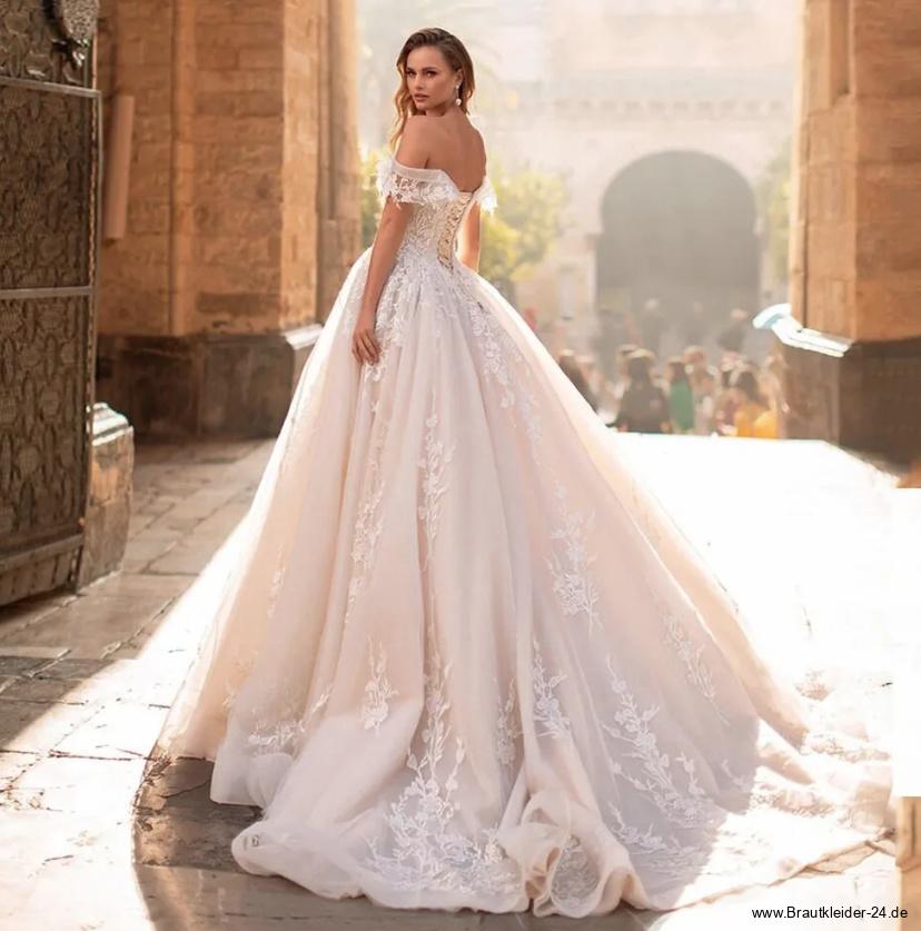 Schulterfreies Prinzessin Brautkleid Lydia mit Schürfung Spitze und Schleppe