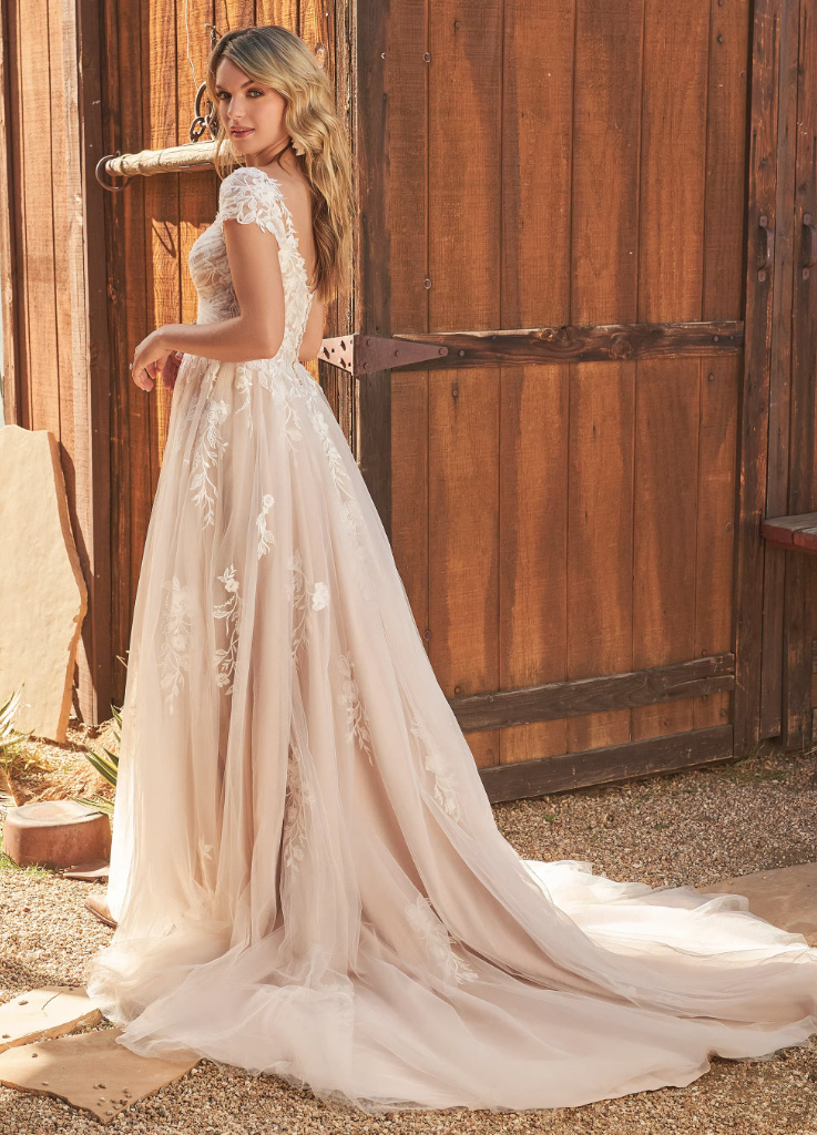 A line boho wedding dress Chandra with tulle lace and train