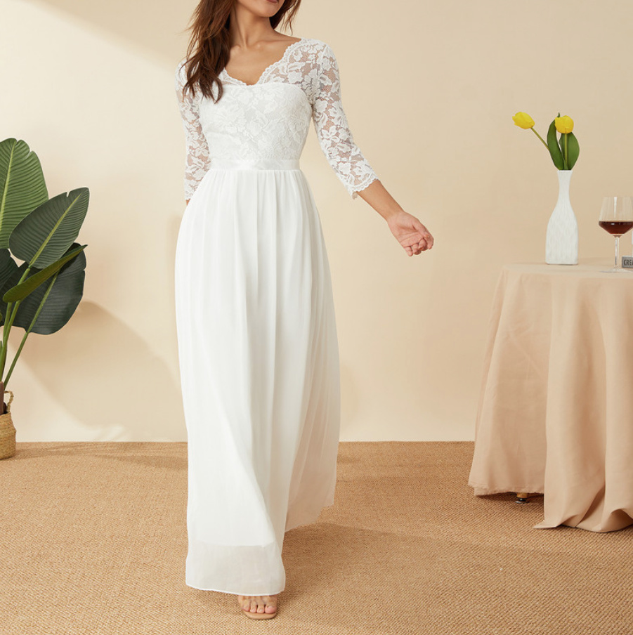 Long Sleeve Empire Civil Wedding Dress Effie for the Bride Long with Lace