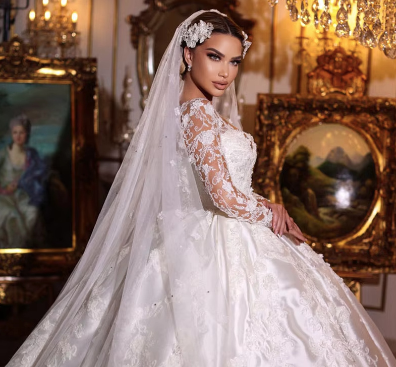 Long Sleeve Princess Ball Line Wedding Dress Claire with Tattoo Lace and Train