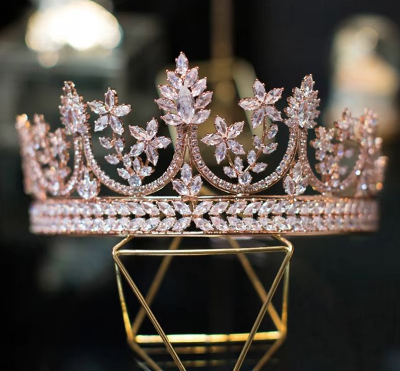Royal Queen Crystal Zirconia Bridal Crown Caecilia in Rose Gold