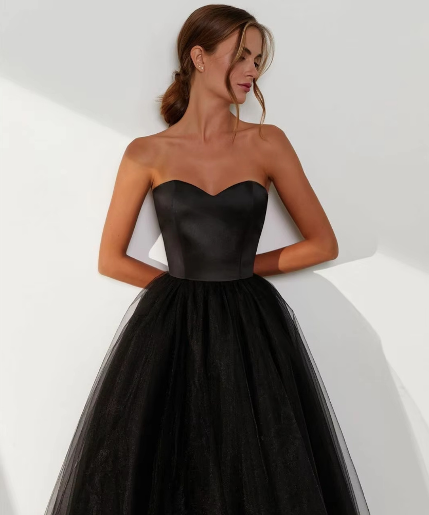 Schulterfreies A Linie Vintage Style Kleid für Hochzeitsgäste Carola Wadenlang mit Tüll Rock Schwarz