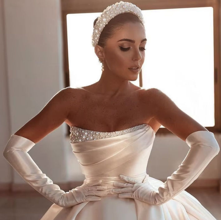 Off-the-shoulder ball line wedding dress Carmina with pearl appliqués