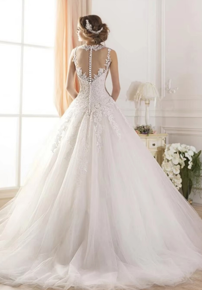 A Line Wedding Dress Christine Classic Sleeveless with Tulle Lace and Train
