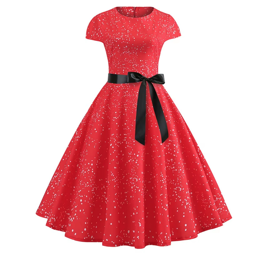 A Line Vintage 60s Rockabilly Dress Cécile Knee Length in Red
